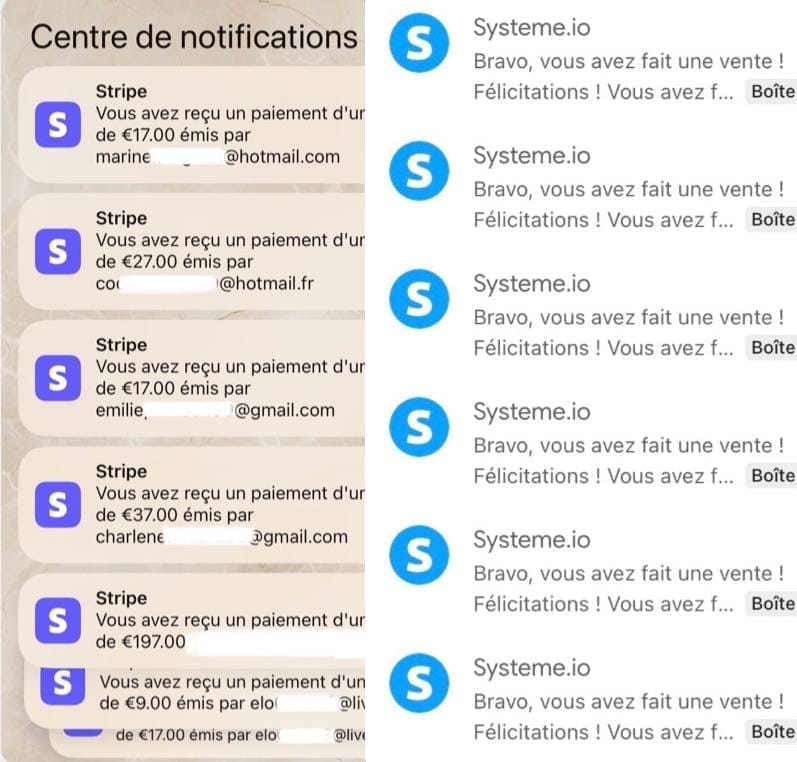 Alors j'ai conçu ce système : un moyen simple et efficace de générer des ventes automatiques sans passer des heures à créer du contenu ou à se mettre en avant (car oui, moi non plus je ne suis pas fan à l'idée de me montrer sur les réseaux sociaux pour vendre et OUI, c'est possible !), que tu sois débutant, intermédiaire ou expert.